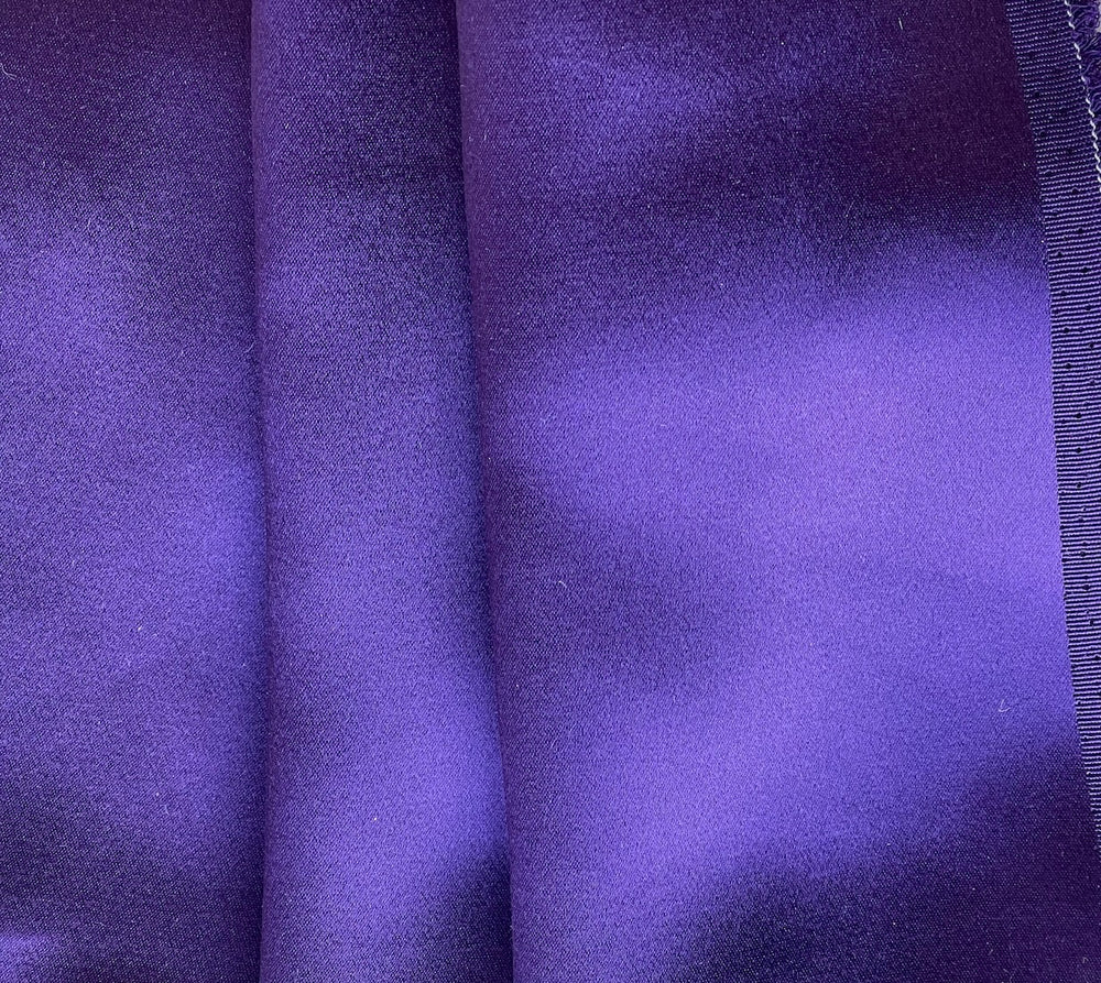 A heavier, 4-ply, 40 momme silk crepe back satin in deep amethyst - with a satin finish on one side and a matte finish on the reverse, this gorgeous silk comes in a variety of colors, lending itself to combining colors for interesting accents. It has a faint pebbled texture and would make exquisite evening wear, a lux dress, trousers, or a top. Made in Korea. 100% silk. 45" wide.