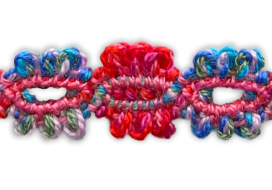 3/4" Cherry & Colbalt Eyelets Bouclé Trim (Made in France)