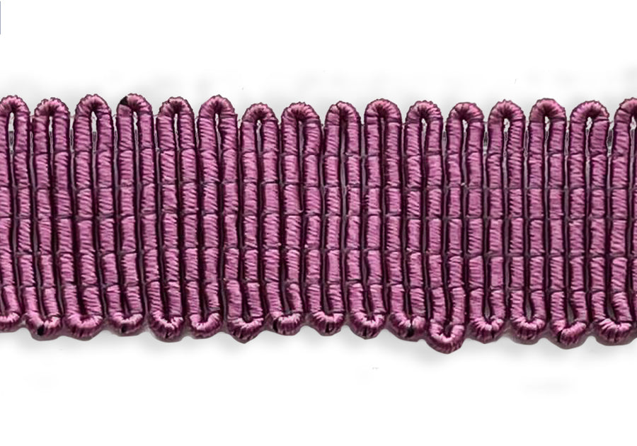 5/8" wide gimp trim in deep French lilac. This trim is perfect for sewing haute couture garments such as French designer-inspired jackets - layer your trims for a unique and special look! Made in France.