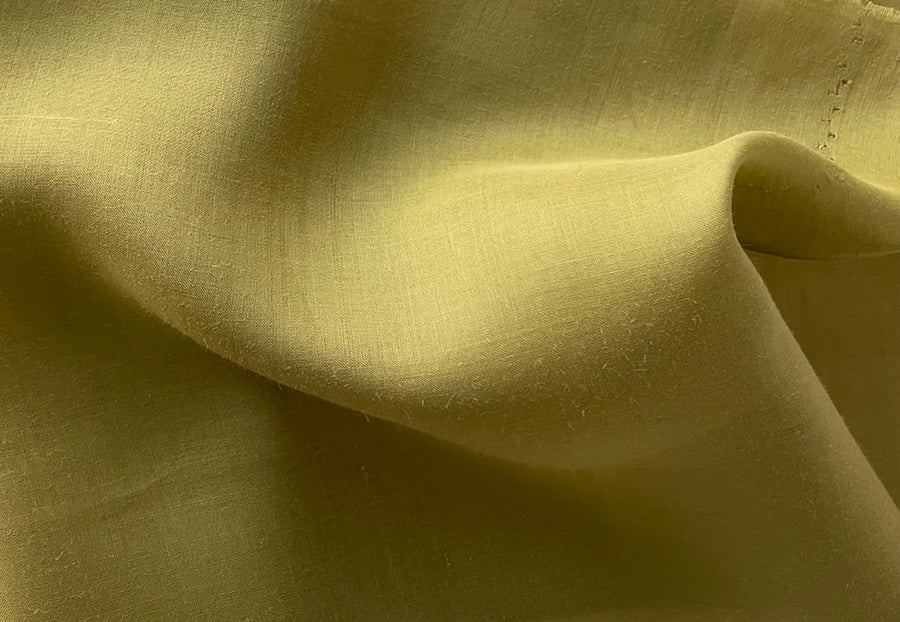 A semi-sheer, lighter-weight handkerchief linen blend in a sophisticated shade of pea green - this airy linen blend is perfect for a blouse, layers, or a full skirt. Made in Italy and used by Alberta Ferretti. 80% linen and 20% ramie. 49" wide.