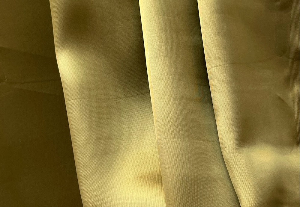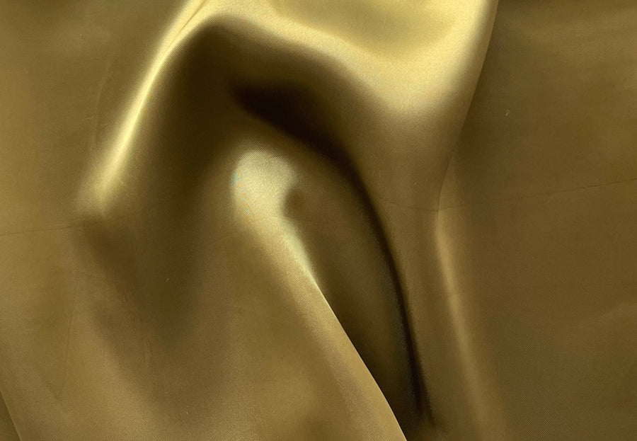 Antique burnished bronze rayon bemberg satin lining. A little heavier, this lining is great for lining jackets. Rayon Bemberg linings are our favorite lining for all fabrics including silk, wool, and linen. They're cool to the touch, smooth, non-cling, and cold water washable. Made in Italy. 100% rayon viscose bemberg. 54" wide.