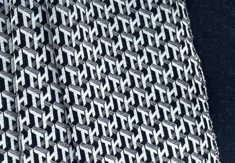 A rayon blend ponte double-knit in a black and white Escher-inspired trompe l'oeil geometric print - great for travel, this double-knit is perfect for a sheath dress, a skirt, jumper, or a comfy jacket. Made in Italy. Rayon, polyester, and lycra. 54" wide.