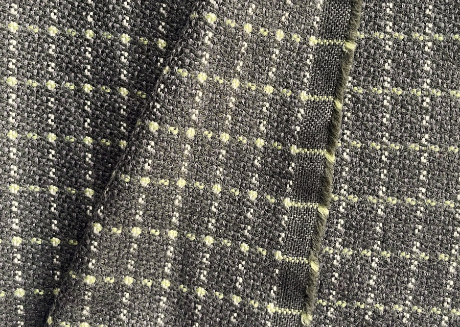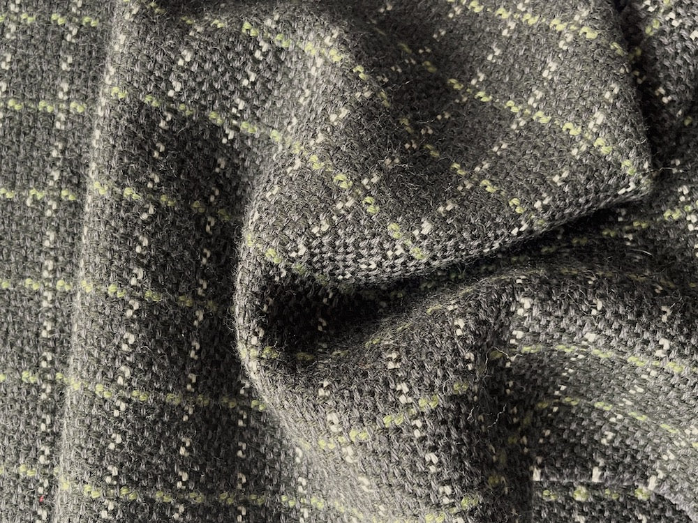 Checked Pea Shoot & Midnight Olive Basketweave Lambswool (Made in Italy)