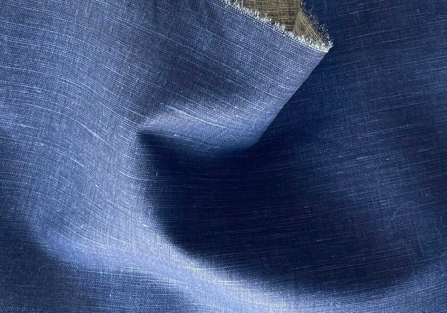A couture dip-dyed mid-weight linen in moody indigo - this smooth, high-end linen is perfect for tunic tops or comfy draw-string pants. Made in Italy and used by Alexander McQueen. 100% linen. 58" wide.