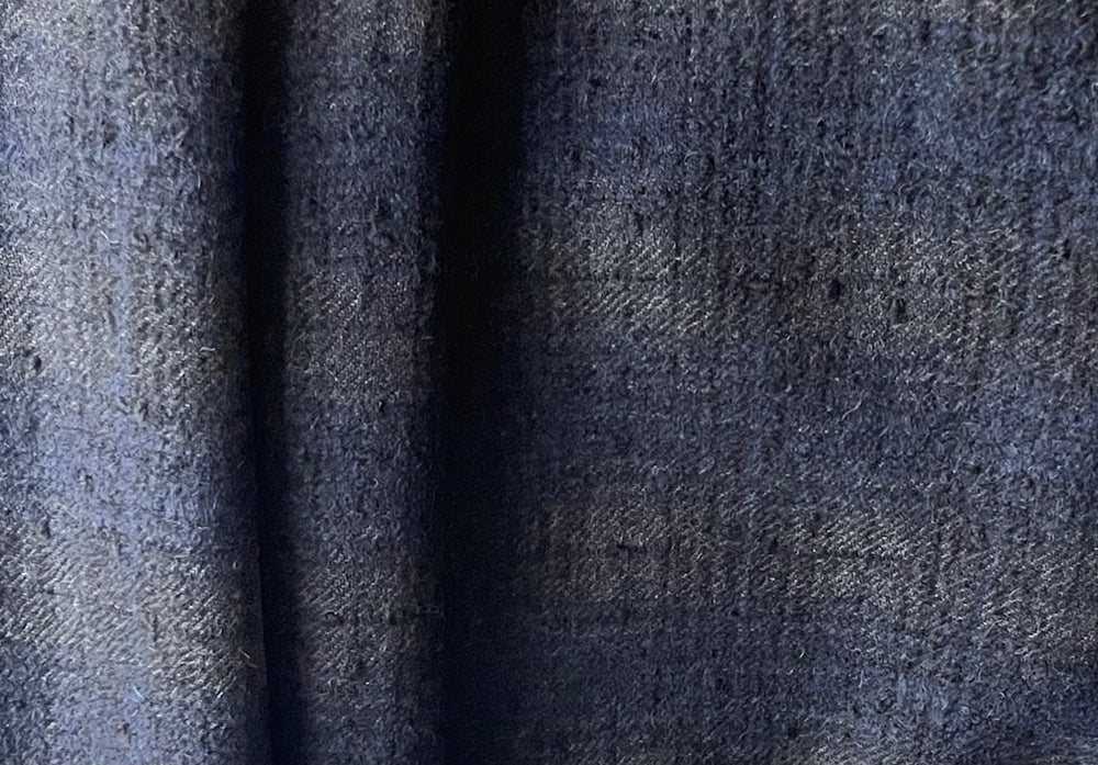 A couture semi-sheer wool bouclé plaid in understated shades of shadow grey and medieval navy blue - this beautifully somber woolen is perfect for skirts, shirts, or dresses. Made in Italy and used by a well known high-end designer. 100% wool. 62" wide.