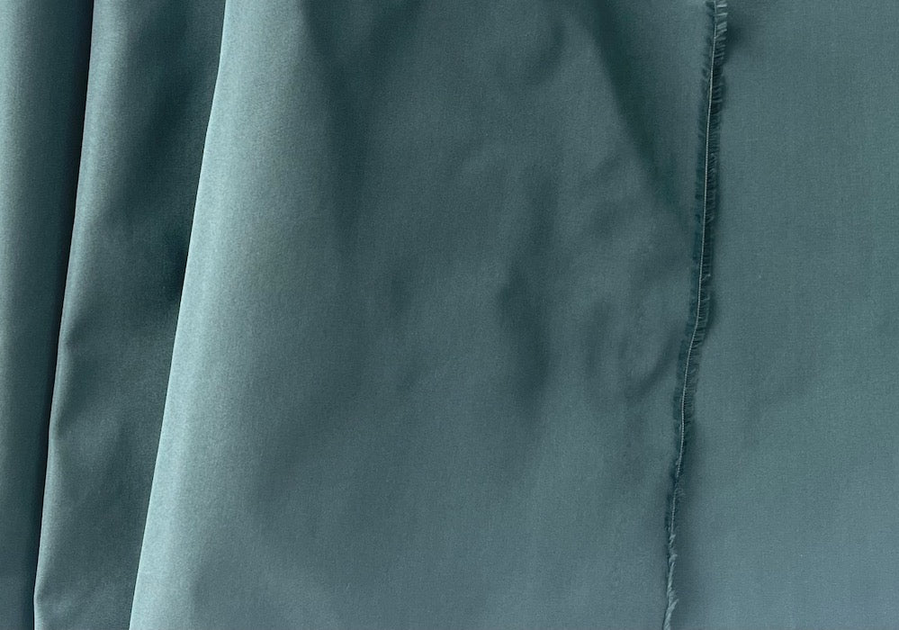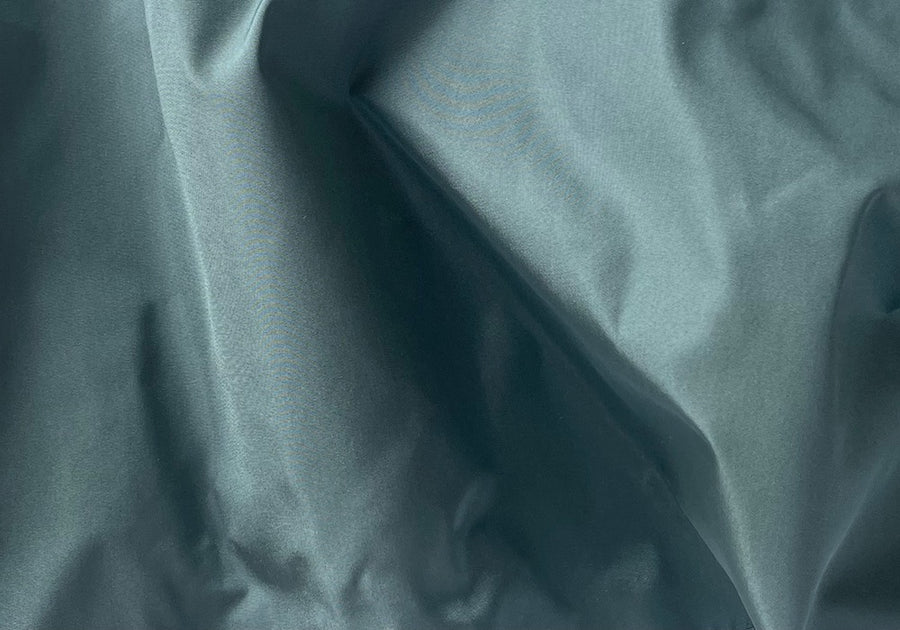 A crisp silk taffeta in elegant shadowed teal green - this tightly woven, airy silk taffeta is stunning for party dresses, cocktail skirts, or wraps. Made in Italy. 100% silk. 55" wide.
