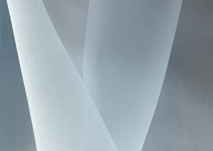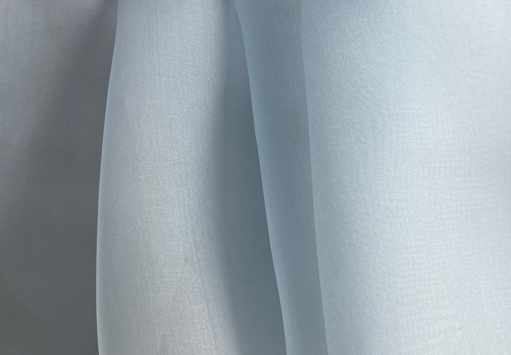 A sheer silk organza in subtle breeze blue - this crisp organza holds its shape and is perfect for a dressy over-shirt, layering, or an eye-catching wrap. Made in Italy. 100% silk. 60" wide.