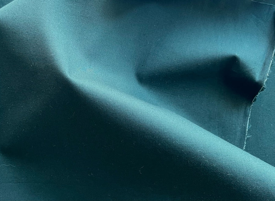 A stretch pima cotton in a cyan teal - with a whisper of lycra, this smooth pima cotton is perfect for a shirts, gathered skirts, or even quilting. Made in Italy. 98% cotton and 2% lycra. 60" wide.