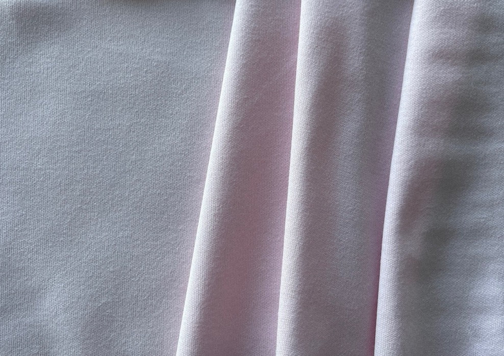 A high-end cotton knit in a sweet shade of delicate baby pink - with a hint of lycra, this smooth knit is a tad heavier and great for tops, pajamas, or children's rompers. Made in Italy. 100% cotton. 58" wide.