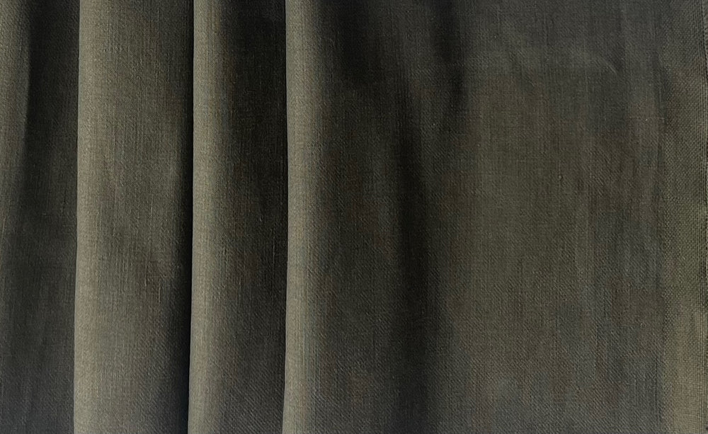 A mid-weight linen and cotton blend twill in inky spinach - this handsome, soft and delicious linen blend is perfect for tunic tops, pants or jackets. Made in Italy. 50% linen and 50% cotton. 60" wide.