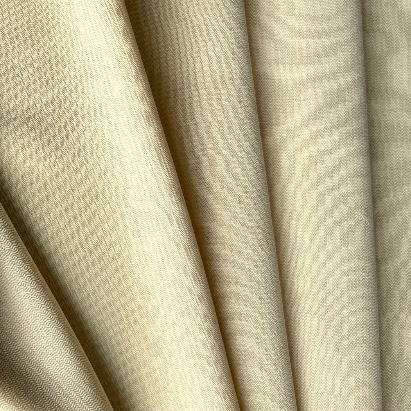 A mid-weight wool blend in sophisticated pale creamy banana and with a micro-herringbone weave - this drapey wool blend is perfect for travel-wear, a skirt, pants, or an elegant dress. 50% wool and 50% viscose. 60" wide.