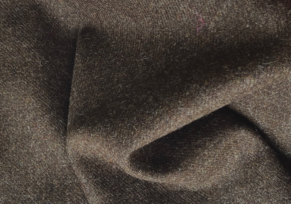 A delicious wool blend flannel in a handsome shade of heathered walnut- this rich, soft woolen flannel is perfect for tailoring including slacks, a sheath dress, a jumper, a waistcoat, or a jacket. Made in Italy and used by Ermenegildo Zegna. 55% wool, 40% alpaca, and 5% cashmere. 61" wide.