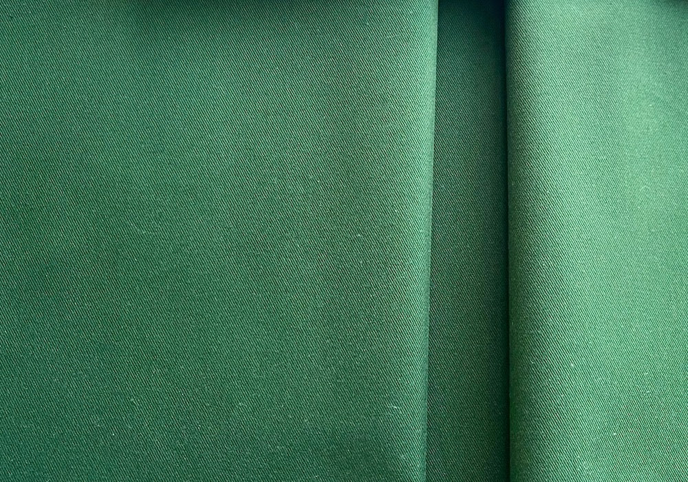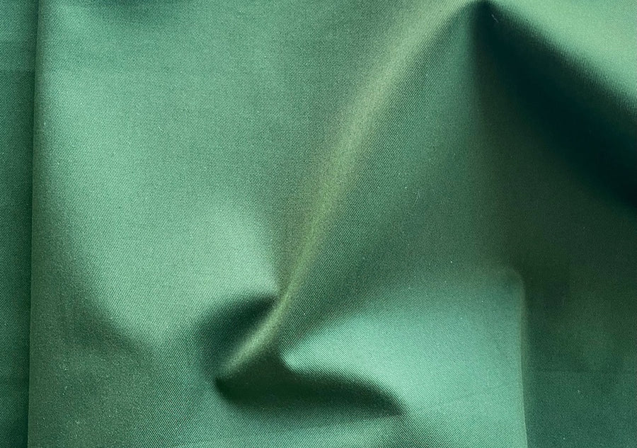 A mid-weight cotton twill in evergreen glade - this handsome cotton twill is perfect for tailored jackets, slacks, jeans, or a sheath dress. Made in Italy. 100% cotton. 60" wide.