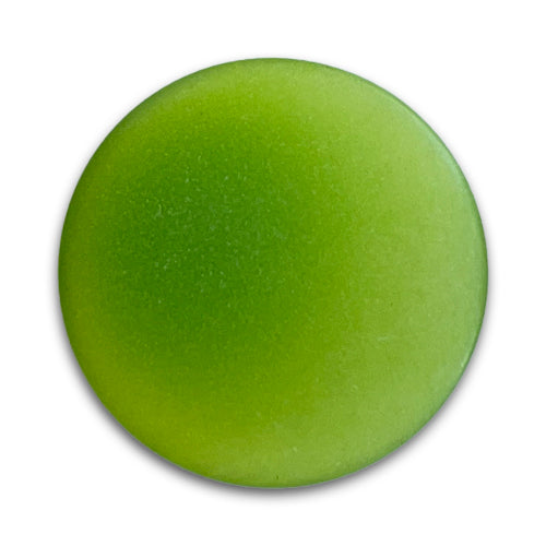 A plastic button in vivid parakeet green, and with a frosted finish. Plastic shank backing. Made in Italy.