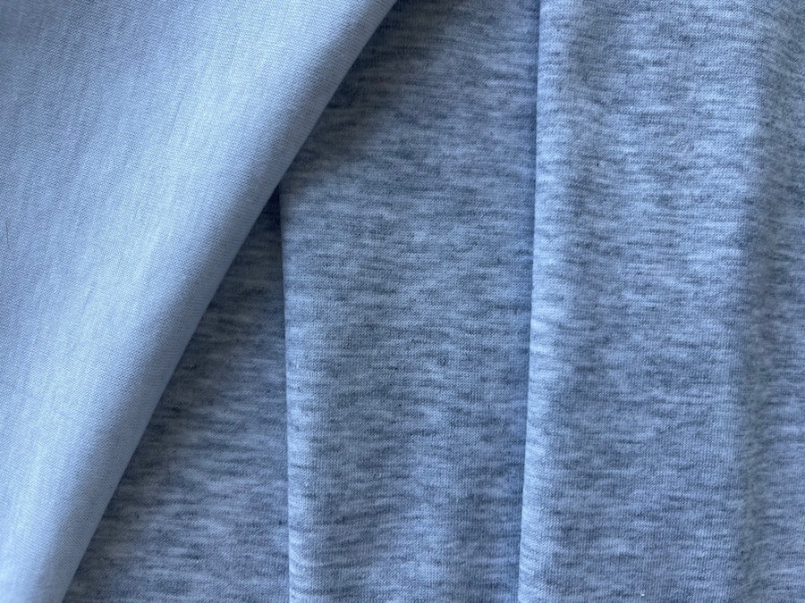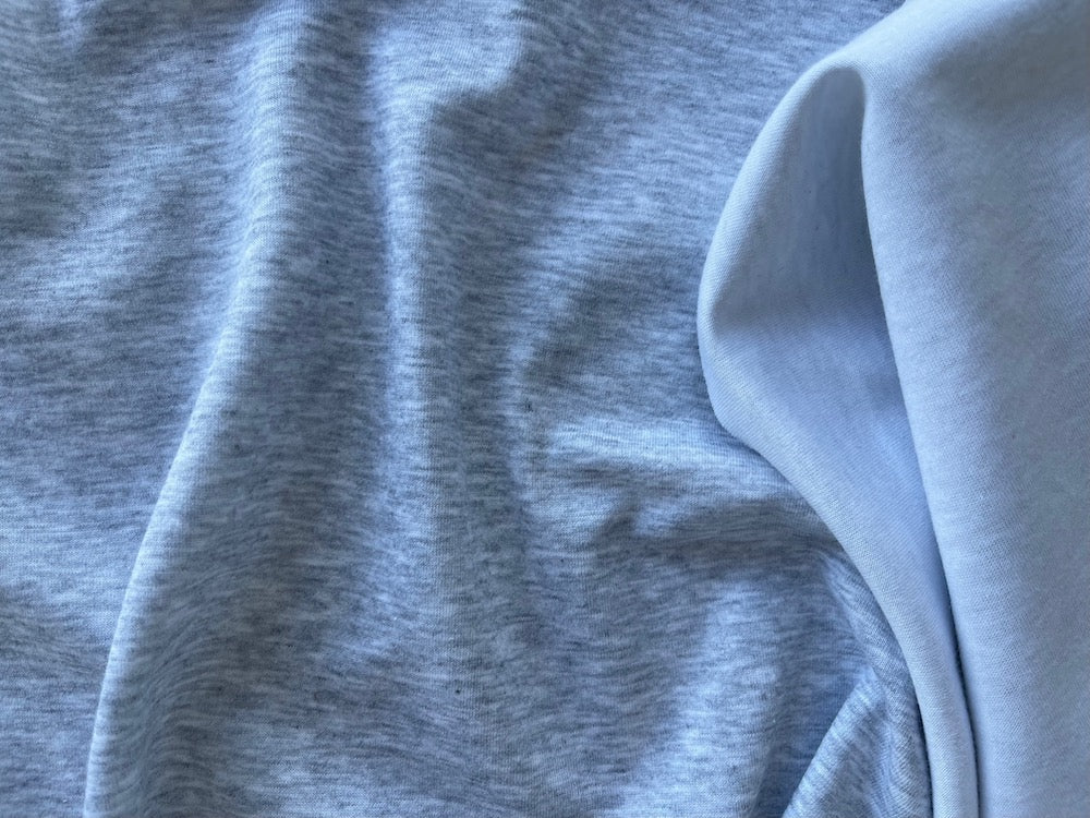 The finest, double-faced all cotton knit in heathered dove grey on one side and cloud white on the reverse - this opaque, supple cotton knit is the perfect weight for T-shirts, sweatshirts, or hoodies. Made in Italy. 100% cotton. 65" extra wide.