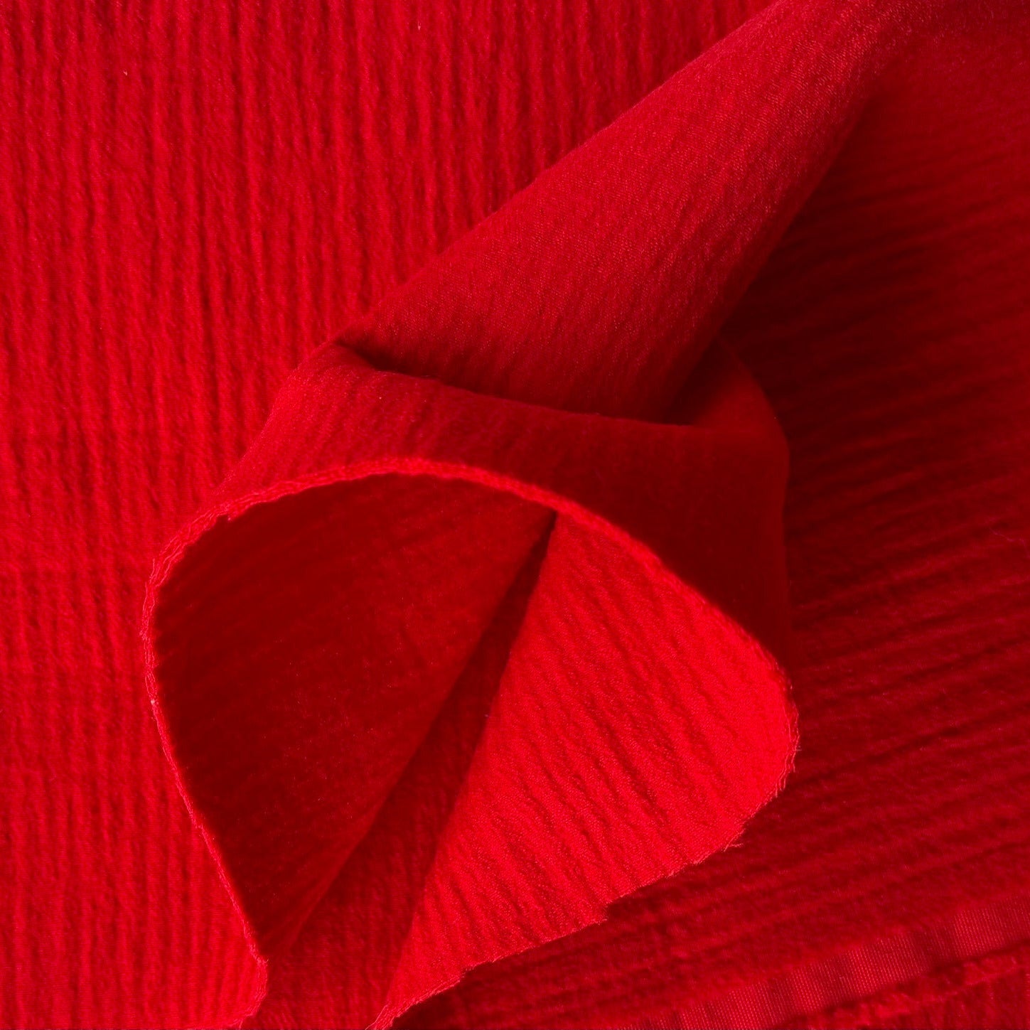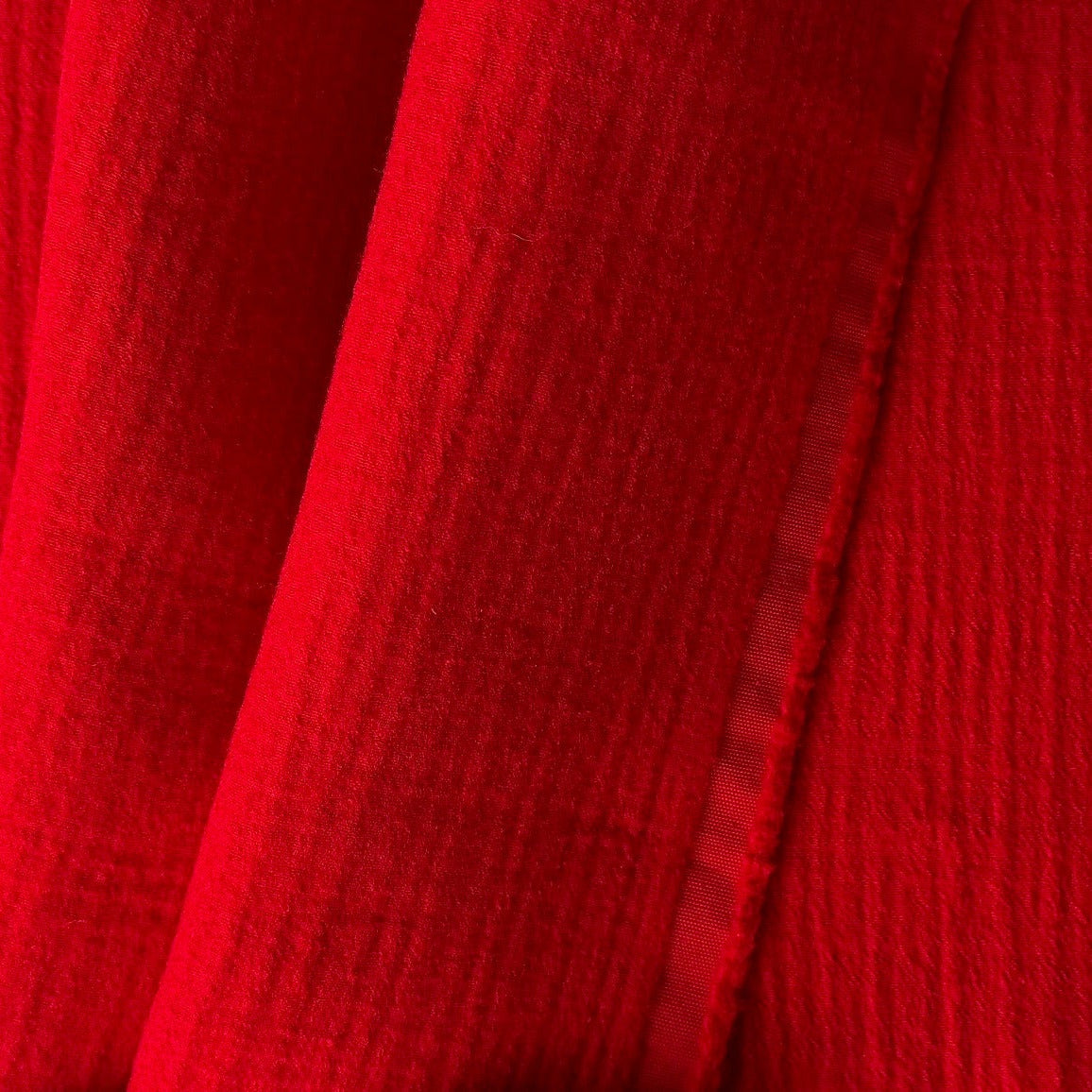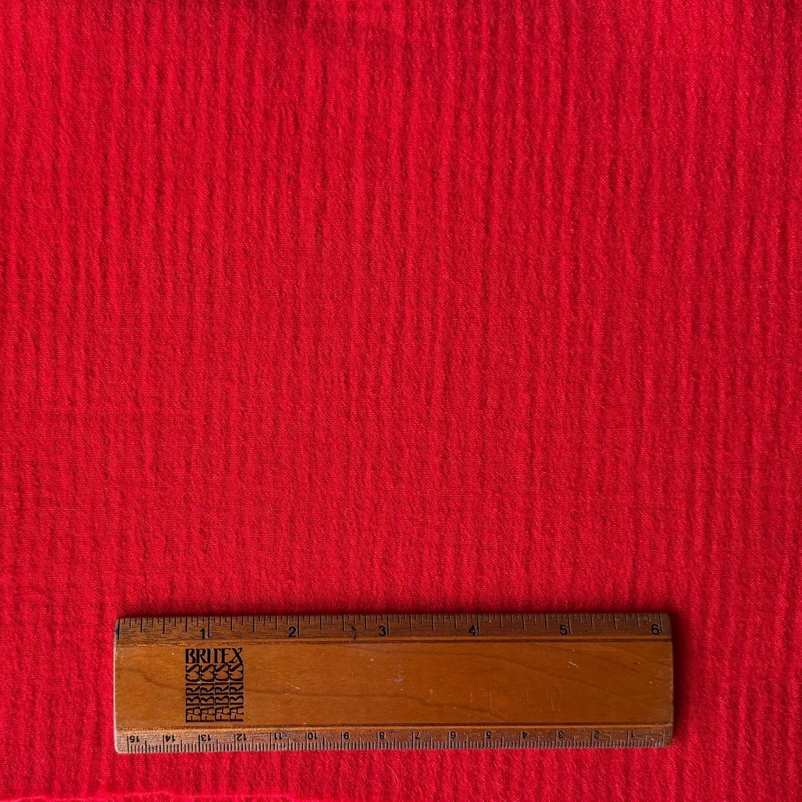 A heavy to mid-weight, double-faced designer woolen in vibrant maraschino red - with its wonderful faux-quilted texture, this woolen is perfect for a hooded jacket, a sporty zip-up, or a cozy wrap. 100% wool. 53" wide.