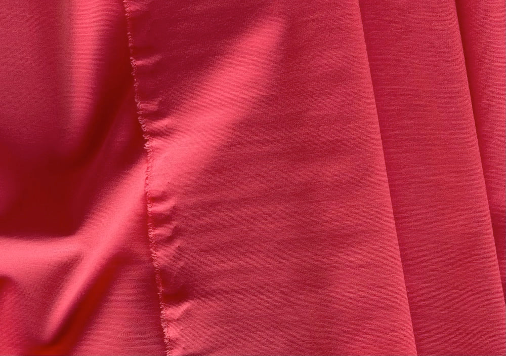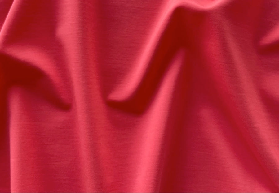 Our finest fluid light to mid-weight rayon viscose blend ponte double-knit in California salmon - with a touch of lycra for comfort, this smooth, supple ponte knit is breathable, cool to the touch, and perfect for travel-wear, tailored slacks, tunics, and sheath dresses. Made in Italy. 80% rayon viscose and 20% lycra. 62" wide.
