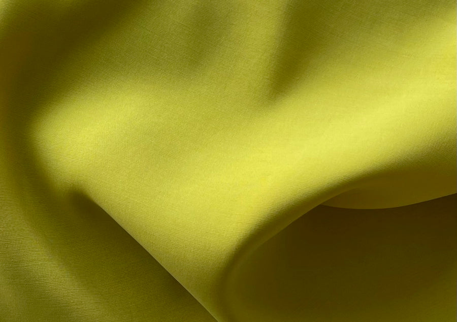 A high-end, mid-weight sueded cupro challis in chartreuse pear- this drapey, matte cupro is cool to the touch, washable, and with a similarity to sueded silk charmeuse. It's perfect for work or travel garments, pants, dresses, or blouses. Made in Italy. 100% cupro (rayon base). 57" wide.