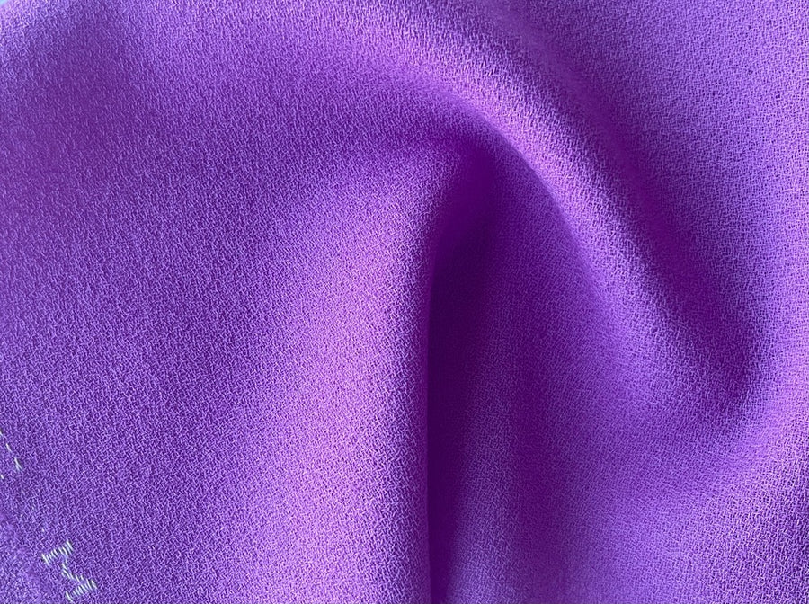 Our favorite selvedged wool crepe with a high twist yarn and in a saturated electrified orchid - with a classic pebbled texture, soft drape, and year-round wearability, this airy crepe is resistant to static and perfect for casual or light formal wear. Great for suits, jackets, dresses, shirts, slacks, and tops. Made in Italy. 100% wool. 58" wide.