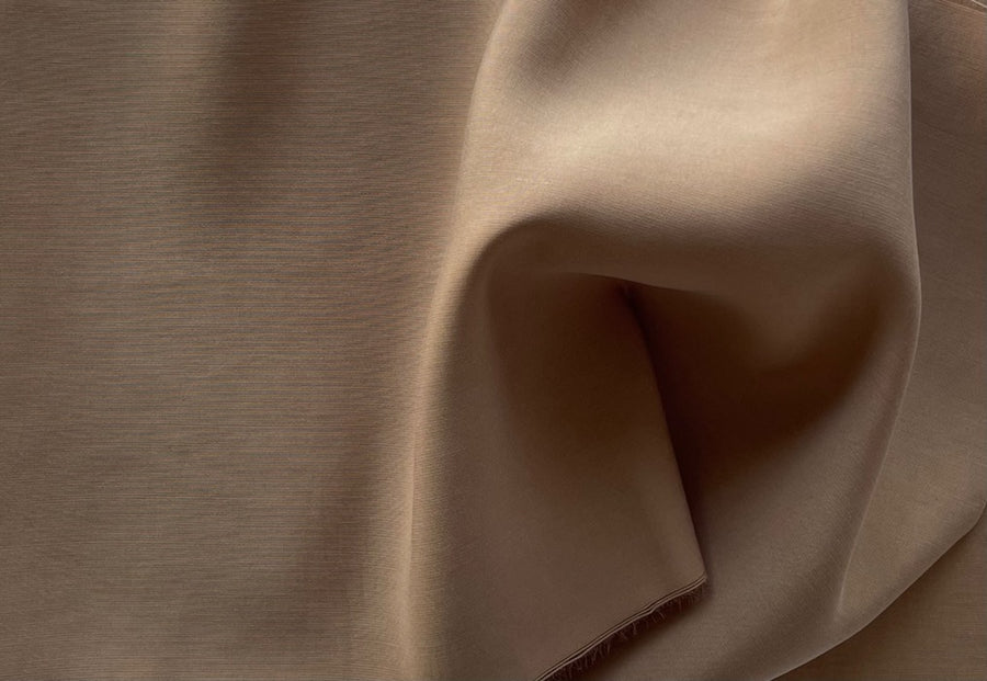 A high-end, mid-weight sueded cupro challis in French camel - this drapey, matte cupro is cool to the touch, washable, and with a similarity to sueded silk charmeuse. It's perfect for work or travel garments, pants, dresses, or blouses. Made in Italy. 100% cupro (rayon base). 57" wide.