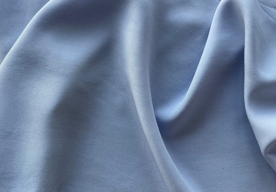 A high-end, mid-weight sueded cupro challis in light cornflower blue - this drapey, matte cupro is cool to the touch, washable, and with a similarity to sueded silk charmeuse. It's perfect for work or travel garments, pants, dresses, or blouses. Made in Italy. 100% cupro (rayon base). 59" wide.