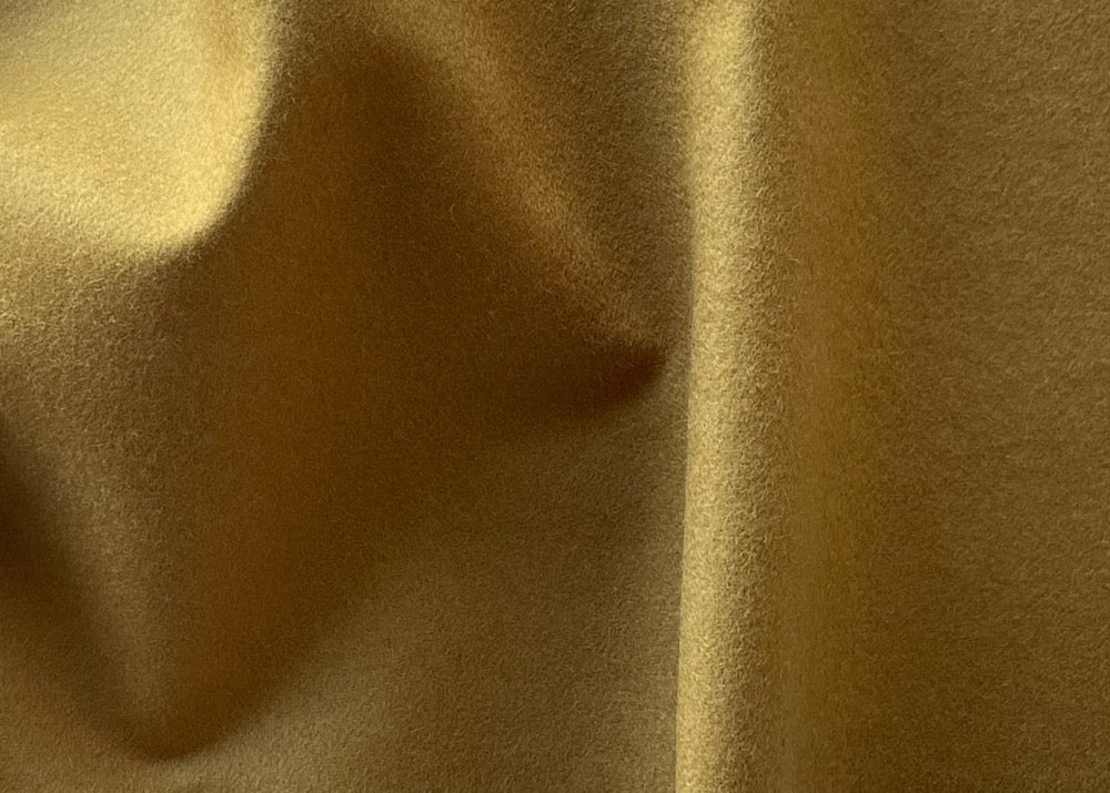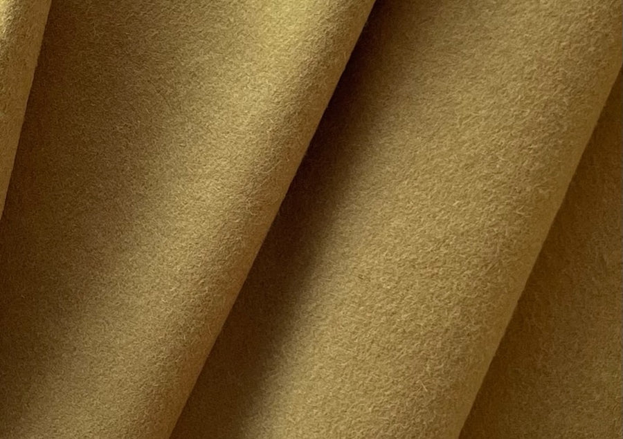 A high-end, light to mid-weight virgin wool melton coating in a bronzed Dijon - this smooth, lightly brushed melton is perfect for a wrap coat, overcoat, skirts, pants, or a jacket. Made in Italy. 100% virgin wool. 62" wide.