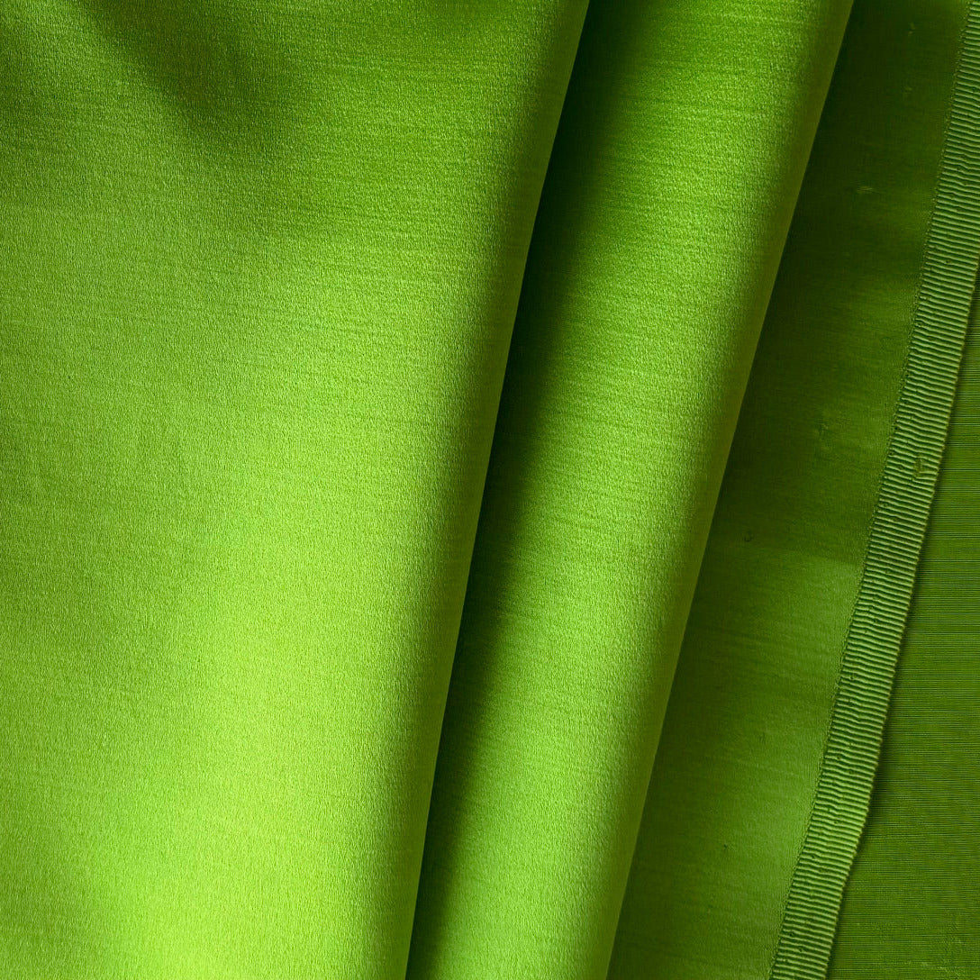 A mid to heavy-weight, high-end silk blend satin in saturated lime punch - this fabulous silk satin is perfect for tailoring, jackets, straight skirts pants, and dressed. Made in Switzerland. 50% silk and 50% wool. 44" wide.