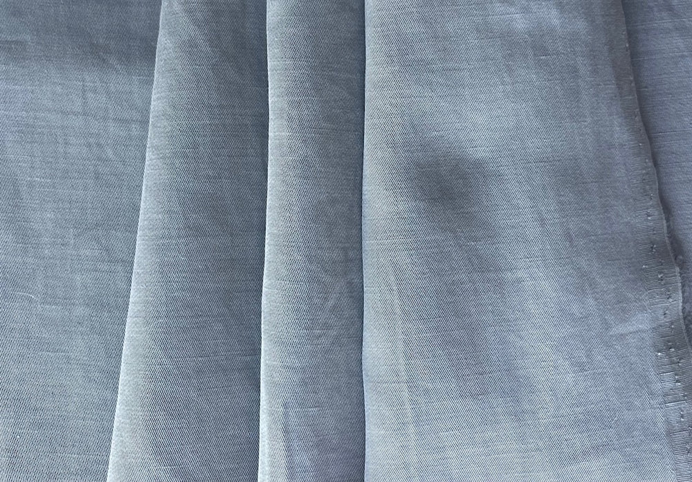 A high-end, mid-weight linen and cotton blend twill in cool pearl grey - this tightly-woven, classic neutral linen blend is perfect for summer pleated pants, a jacket, or table linens. Made in Italy. 50% linen and 50% cotton. 59" wide.