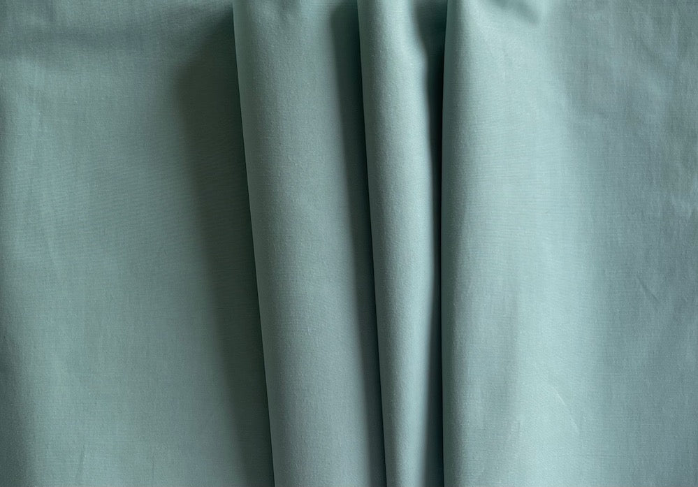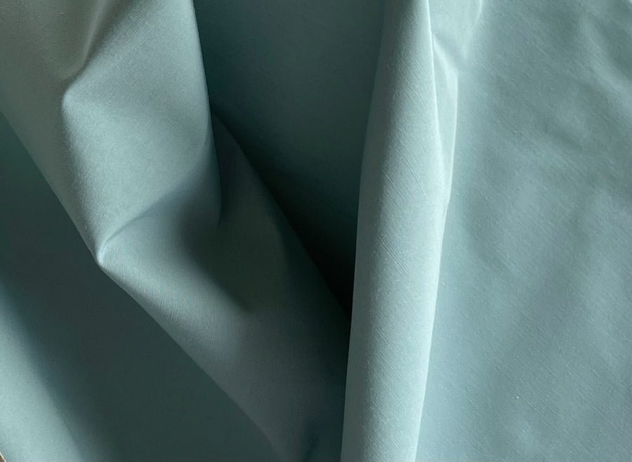 A high-end cotton blend in pistachio sea - this smooth cotton is perfect for a skirt, capri pants, a warmer weather jacket, a duvet cover, or a shirt. Made in Italy. 50% cotton and 50% polyester. 58" wide.