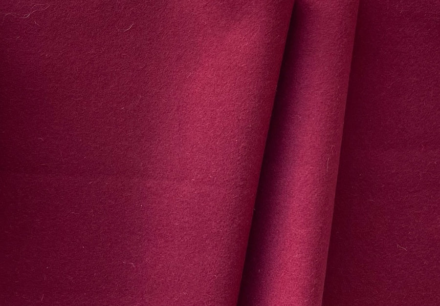 A designer, mid-weight virgin wool melton coating in a warm shade of current wine - this classically timeless, lightly brushed melton is perfect for a wrap coat, overcoat, or a jacket. Made in Italy and used by Hugo Boss. 100% wool. 61" wide.