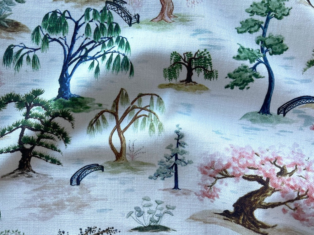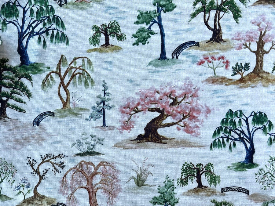 Japanese Trees & Sori Bashi Bridges Textured Cotton