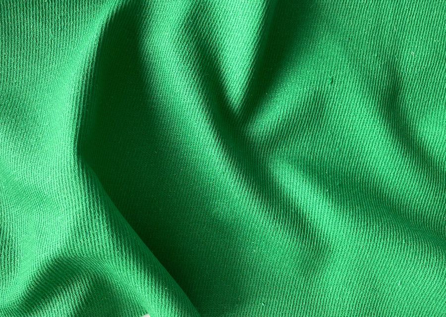A mid-weight raw silk twill in rich jeweled emerald green - this distinctive twill is marvelous for a tailored suit, pants, an elegant tunic, or a simple sheath dress. Made in Italy. 100% silk. 56" wide.