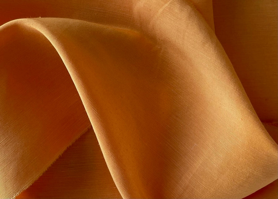 A light-weight linen and silk blend in a delicate shade of juicy cantaloupe - this slightly slubbed, silk soft linen is perfect for shirts, dresses, or Oshawa style pants. Made in Italy. 50% linen and 50% silk. 60" wide.