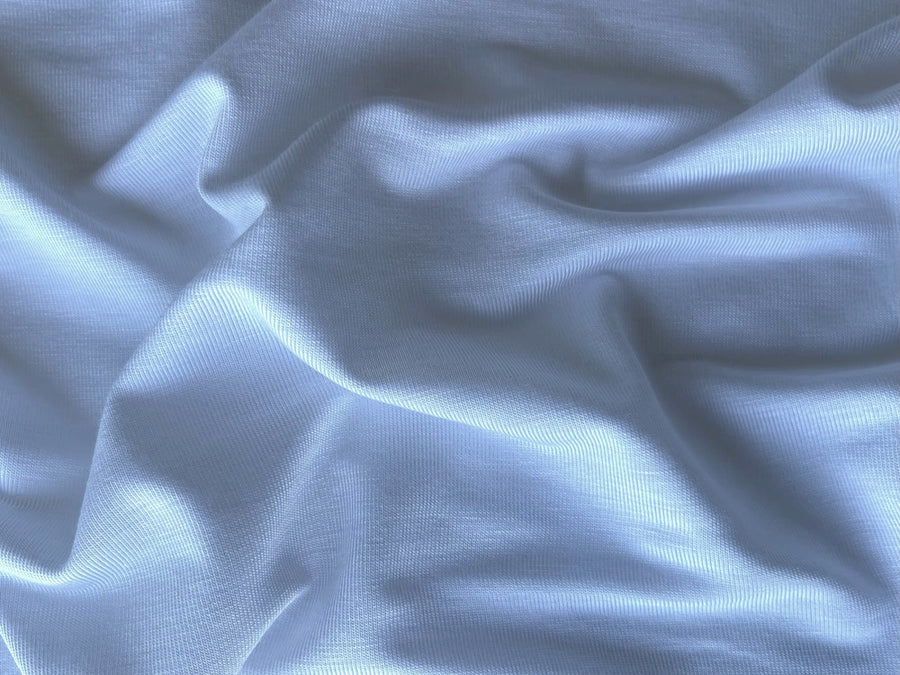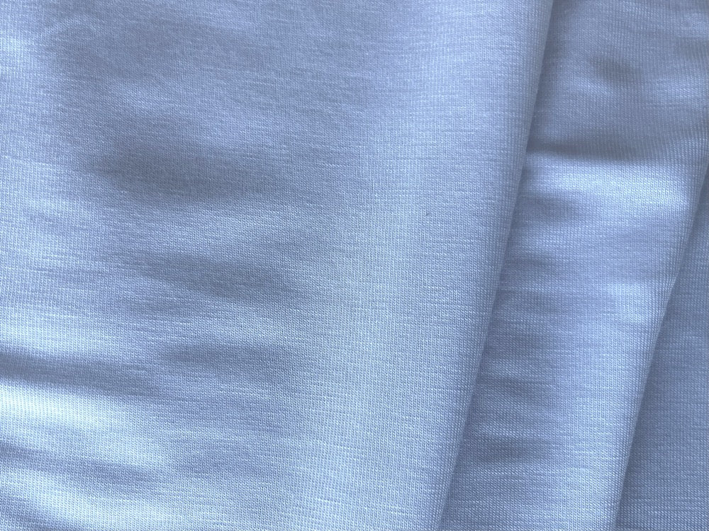 A light-weight rayon viscose knit in bright daisy white - with a touch of lycra for comfort, this dreamy fluid knit is breathable and perfect for travel-wear, slouchy comfy tops, dresses, or cool pajamas. Made in Italy. Rayon viscose and lycra. 60" wide.