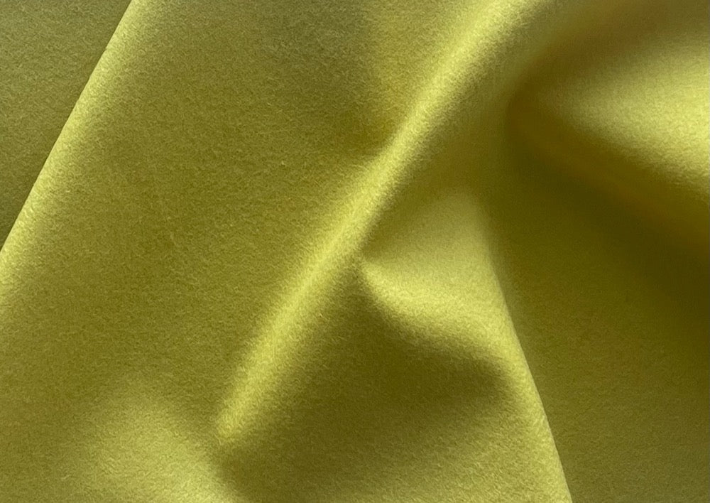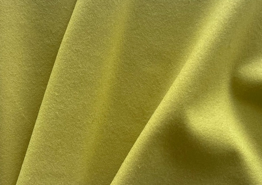 A high-end, lighter-weight wool melton coating in electric chartreuse yellow - this delicious, lightly brushed melton is perfect for a wrap coat, overcoat, or a jacket. Made in Italy. 100% wool. 60" wide.