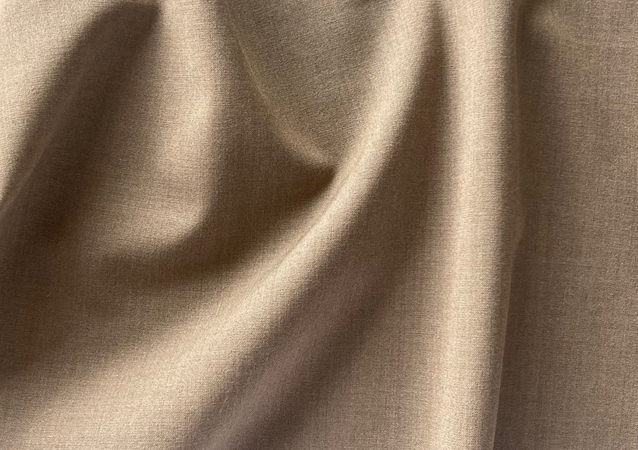 A lighter-weight stretch rayon blend gabardine in heathered mushroom - with a touch of lycra for comfort, this fabric is perfect for shirts, skirts, or light-weight slacks. 49% rayon, 45% polyester, and 4% lycra. 56" wide.