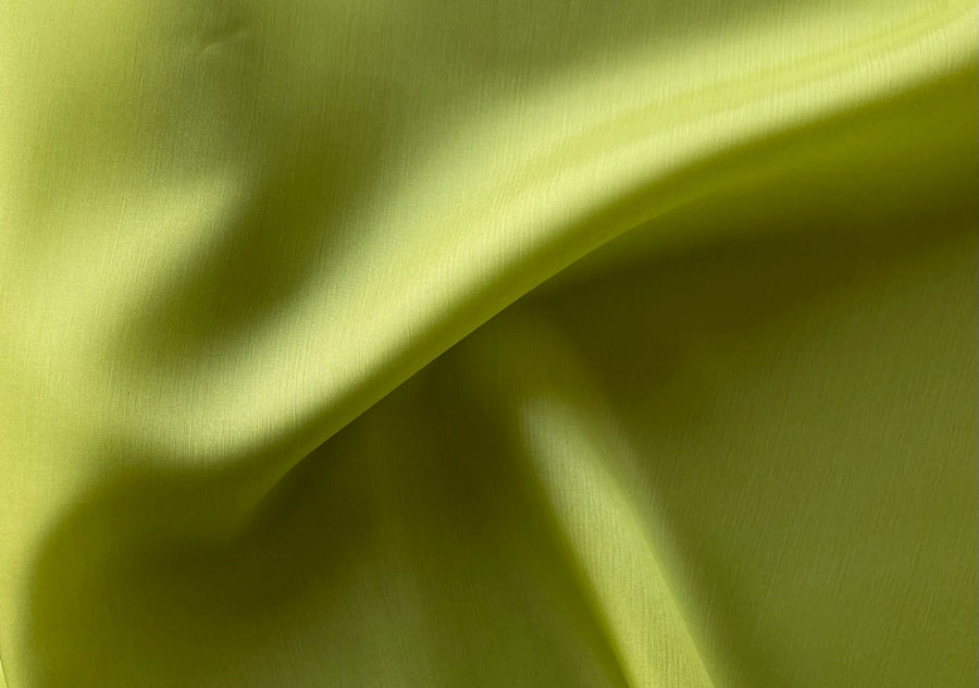 Lighter-weight lime green rayon bemberg lining. Rayon Bemberg linings are our favorite lining for all fabrics including silk, wool, and linen. They're cool to the touch, smooth, non-cling, and cold water washable. Made in Italy. 100% rayon viscose bemberg. 55" wide.