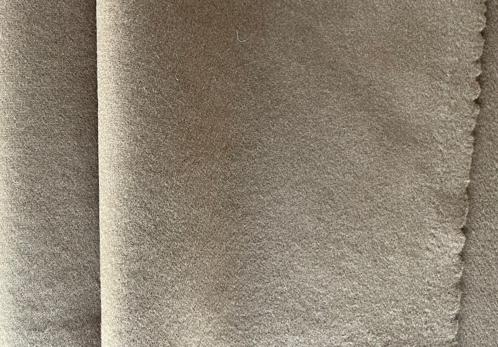 A lighter-weight, high-end wool and cashmere coating in a timeless shade of camel - this buttery soft woolen is perfect for a light-weight jacket, a wrap coat, pencil skirt, or soft pleated slacks. Made in Italy in one of Italy's finest mills. 70% wool and 30% cashmere. 61" wide.