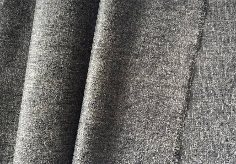 A couture, light-weight linen tweed blend in sand and soft black quartz - smooth and with an unusual texture and coloration, this linen blend tweed is perfect for chic summer dresses, tunics, or skirts. Made in Italy and used by Alexander McQueen. 40% linen and 60% polyester. 56" wide.