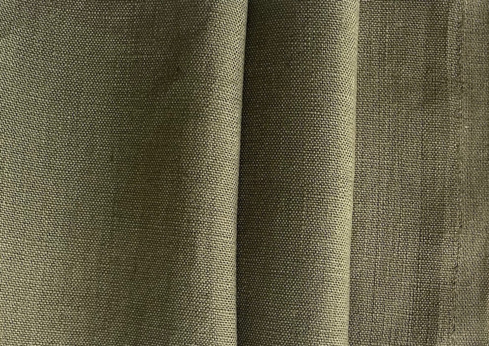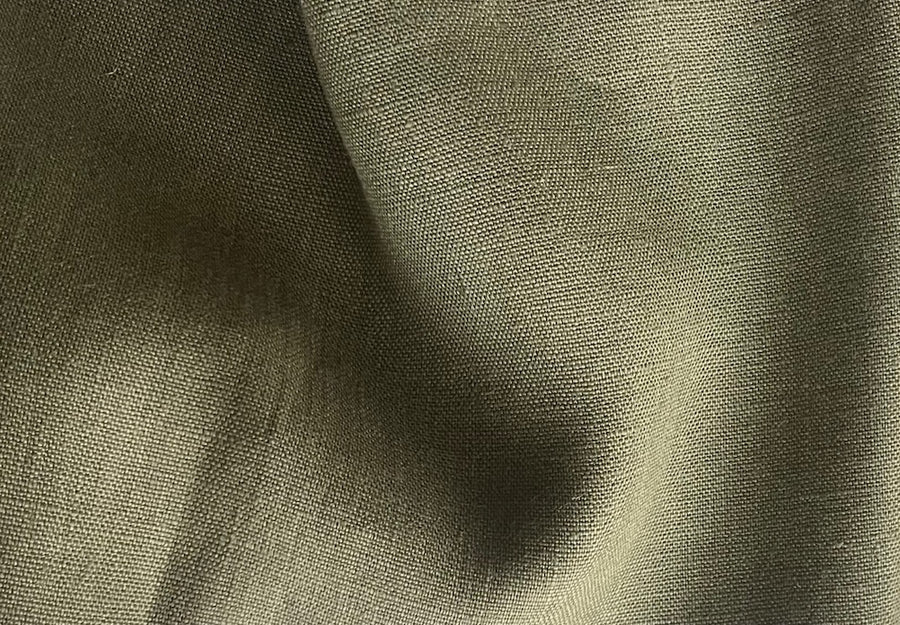 A mid-weight linen in burnt martini olive green - this soft, smooth, and delicious linen is perfect for tunic tops, blouses, or comfy draw-string pants. Made in Italy. 100% linen. 60" wide.
