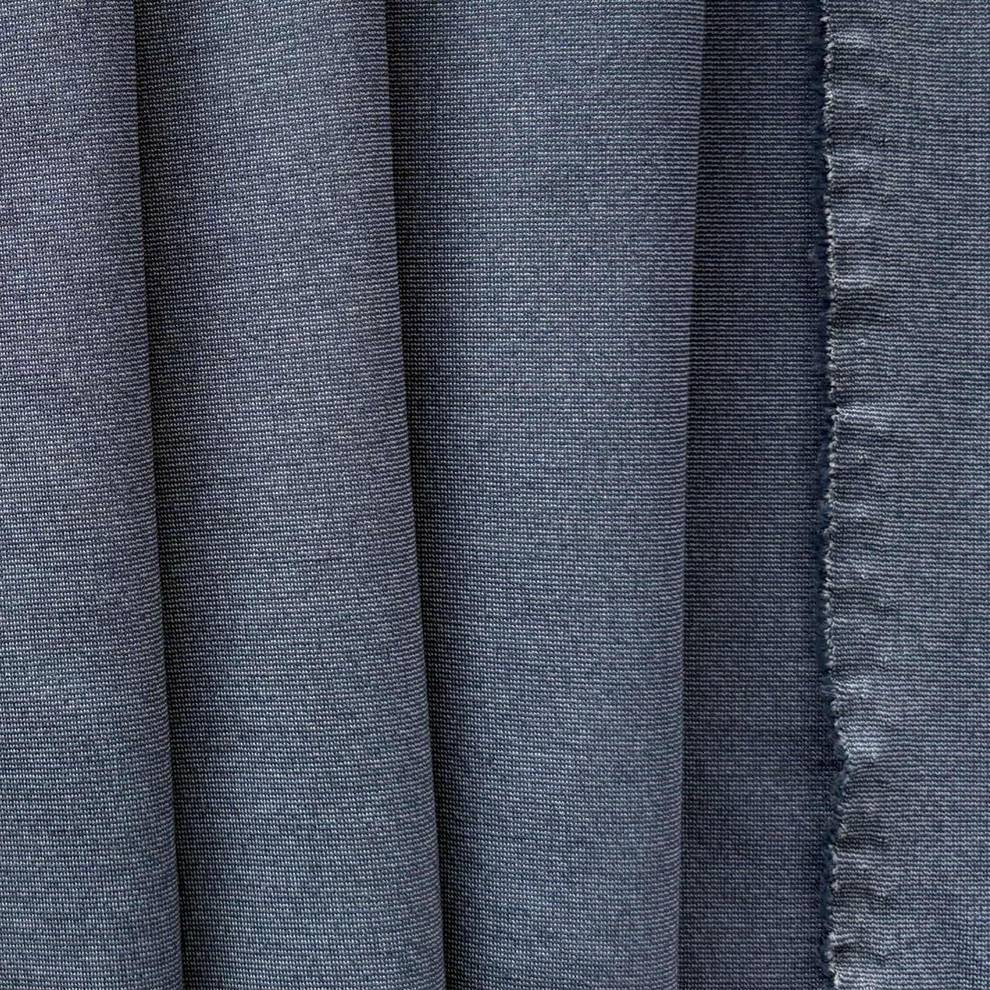 A mid-weight rayon viscose blend ponte double-knit in unwashed denim blue - with a touch of lycra for comfort, this supple ponte knit is breathable, cool to the touch, and perfect for travel-wear, sports-wear, and jackets. 66% rayon viscose, 30% nylon, and 4% lycra. 59" wide.