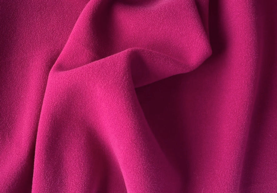 A plush mid-weight polyester micro-fleece in French Pink - machine washable and drapey, this polyester matte fleece is perfect for a sportswear, a hoodie or a snugly robe. Made in Italy. Polyester and lycra. 72" wide.