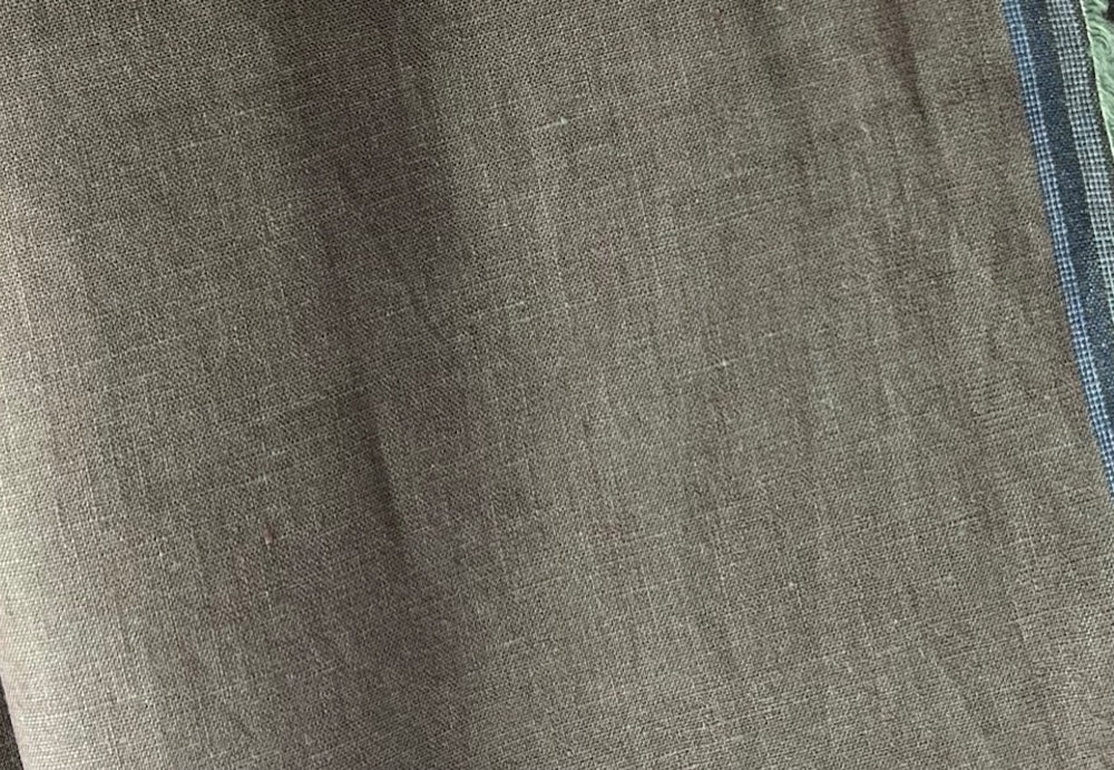 A mid-weight linen in a cross-woven mix of sage green and soft brown - this beautiful neutral linen has a soft hand and is perfect for a table linens, tunic, draw string pants, or a floaty summer dress. Made in Italy. 100% linen. 60" wide.