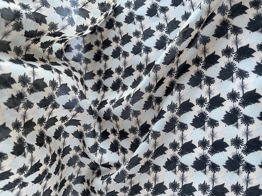 A semi-sheer rayon viscose georgette in a 1930s-inspired small print of asters and tulips in soft black, pale primrose pink, and blue mist - this soft, fluid rayon is perfect for an over-shirt blouse, tunic, or long flowing skirts. Made in Italy. 100% rayon viscose. 56" wide.