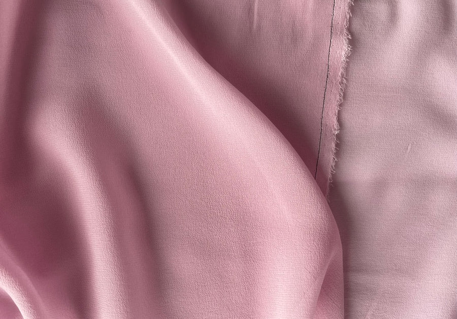 A semi-sheer, matte silk crepe chiffon in delicate cherry blossom pink - this luscious, drapey silk is perfect for simple scarves, floaty dresses, translucent sleeves, or luxurious blouses. Made in Italy. 100% silk. 54" wide.