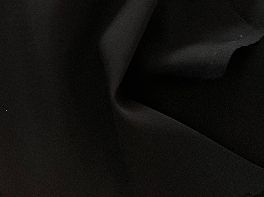 A semi-sheer, stretch silk crepe charmeuse in onyx - with a touch of stretch, this fluid, cool silk crepe is perfect for blouses, lingerie, lining, or vintage-style dresses. Made in Italy. 97% silk and 3% lycra. 42" wide.