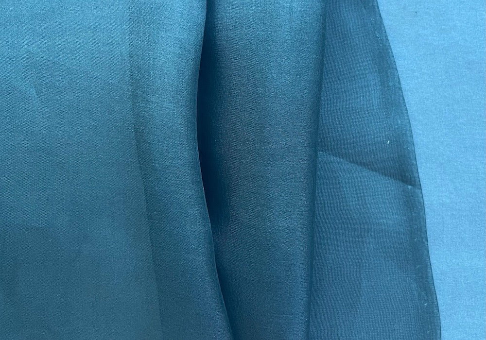 A sheer silk organza in deepest midnight bottle green - nearly black, this crisp organza holds its shape and is perfect for a dressy over-shirt, layering, or an eye-catching wrap. Made in Italy. 100% silk. 43" wide.