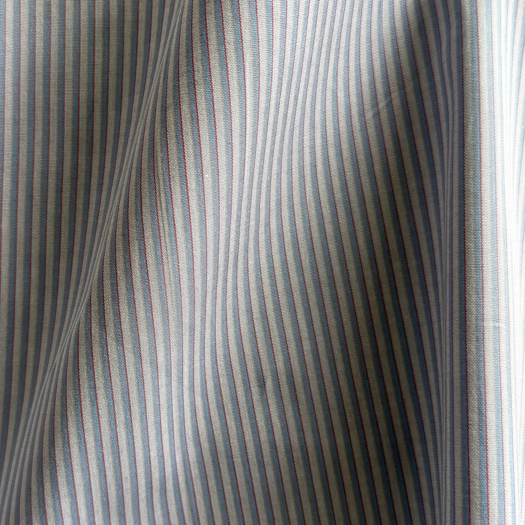 Soft Denim & Barn Red on Fog Striped Cotton Shirting (Made in Japan)