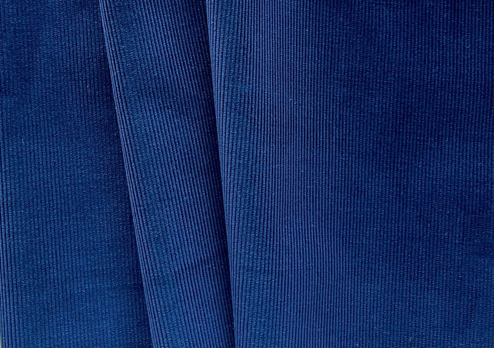 A high-end, mid-weight, pinwale cotton corduroy in indigo ink - this beautifully soft corduroy is a true cord du roi or corded velvet, and is perfect for pants, overalls, jackets, or skirts. Iron on the wrong side of the fabric and with the nap, or verso del pelo. A needle board can be utilized. Made in Italy. 100% cotton. 61" wide.