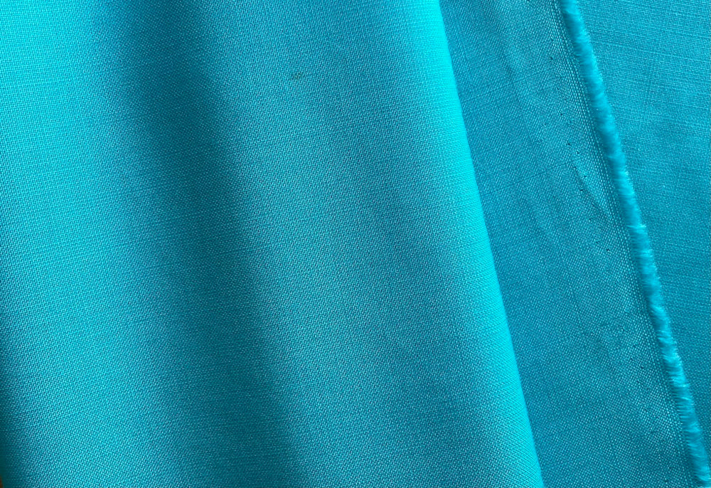 A high-end, lighter-weight wool and mohair suiting in sparkling Persian turquoise blue - supple and soft, this woolen suiting is perfect for tailored slacks, jackets, dresses, or suits. Made in Italy and used by Versace. 70% wool and 30% mohair. 62" wide.